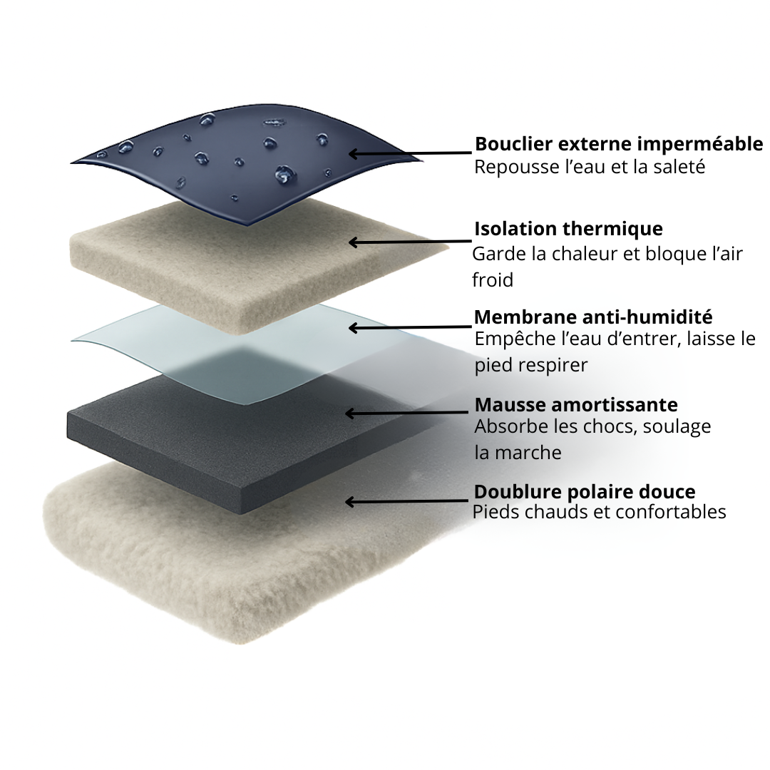 Oui, elles sont entièrement imperméables, conçues pour garder vos pieds au sec même sous la pluie ou dans la neige.
